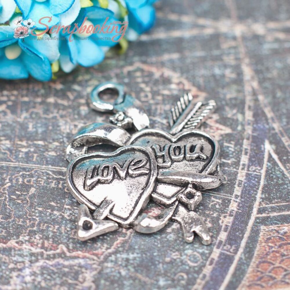 Металева підвіска сріблястого кольору серце Love you розміром 27*35мм стане чудовою прикрасою для Ваших робіт. Ціна за 1шт.