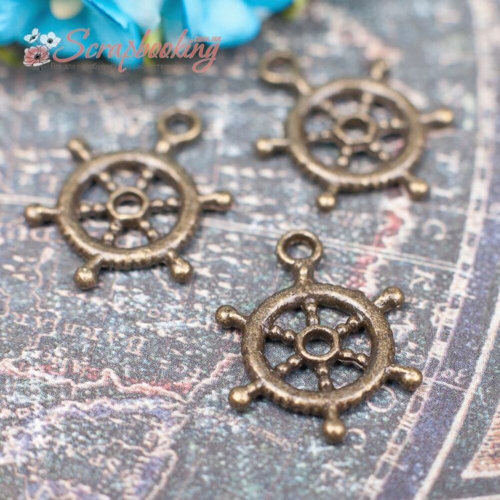 Металева підвіска бронзового кольору штурвал розміром 20*15мм стане чудовою прикрасою для Ваших робіт. Ціна за 1шт.