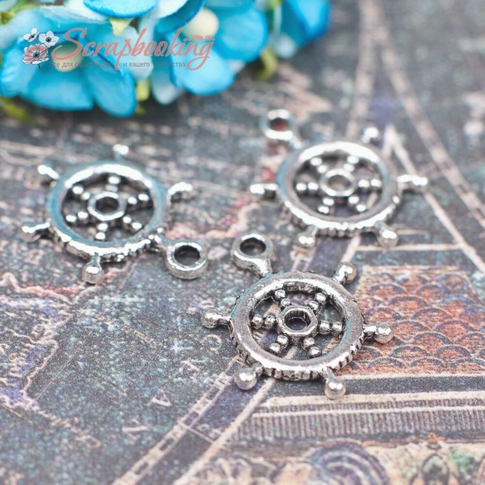 Металева підвіска сріблястого кольору штурвал розміром 20*15мм стане чудовою прикрасою для Ваших робіт. Ціна за 1шт.