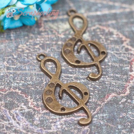 Металева підвіска бронзового кольору скрипковий ключ розміром 36*17мм стане чудовою прикрасою для Ваших робіт. У заглиблення можна приклеювати стрази. Ціна за 1шт.