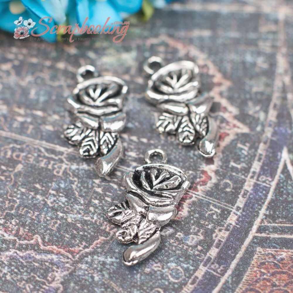 Металева підвіска сріблястого кольору троянда розміром 22*12мм стане чудовою прикрасою для Ваших робіт. Ціна за 1шт.