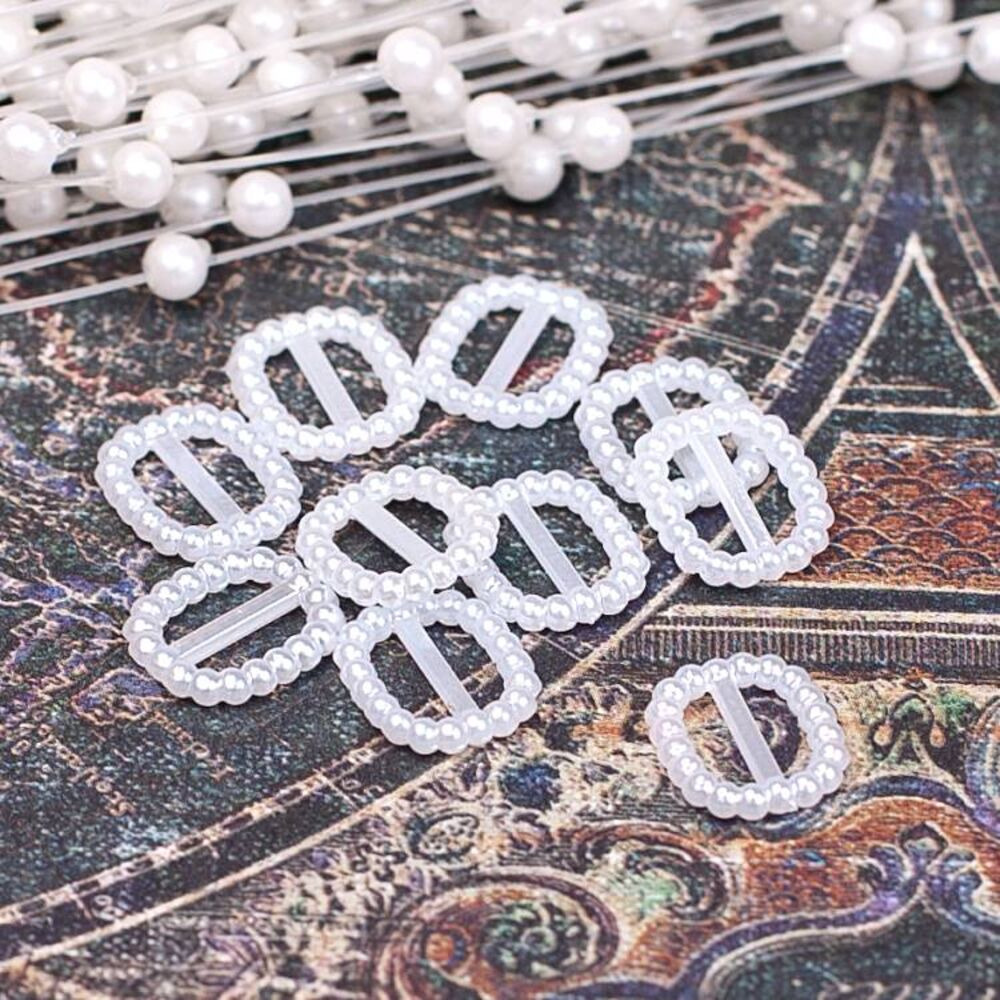 Пластикова декоративна пряжка у вигляді овалу білого кольору. Розмір пряжки 11х13мм. В упаковці 10шт. Пряжки запаковані в зип-пакет.