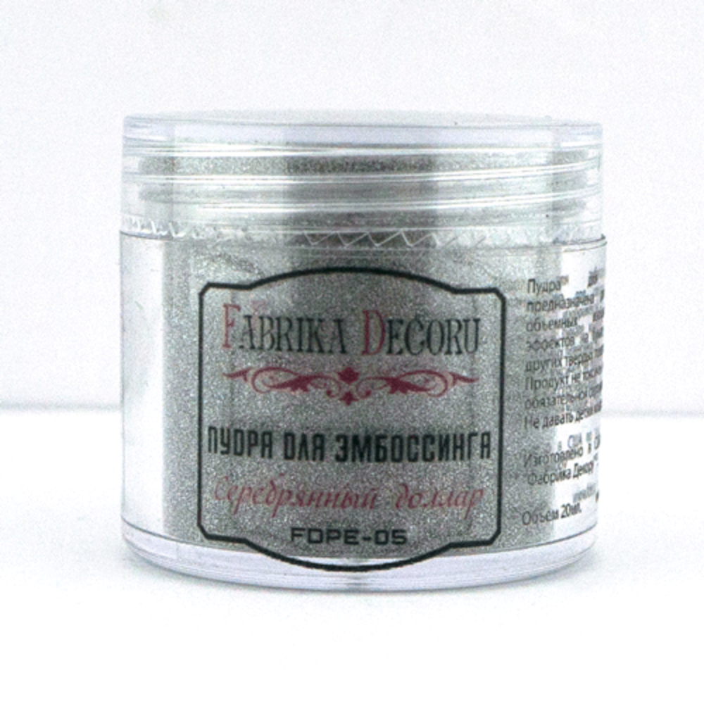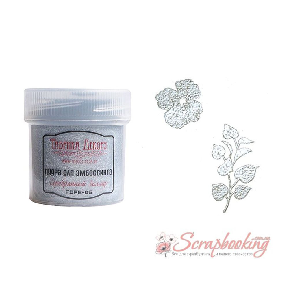 Пудра для ембосингу кольору Срібний долар від Фабрики Декору призначена для створення об'ємних зображень та ефектів на папері, картоні інших твердих поверхнях.