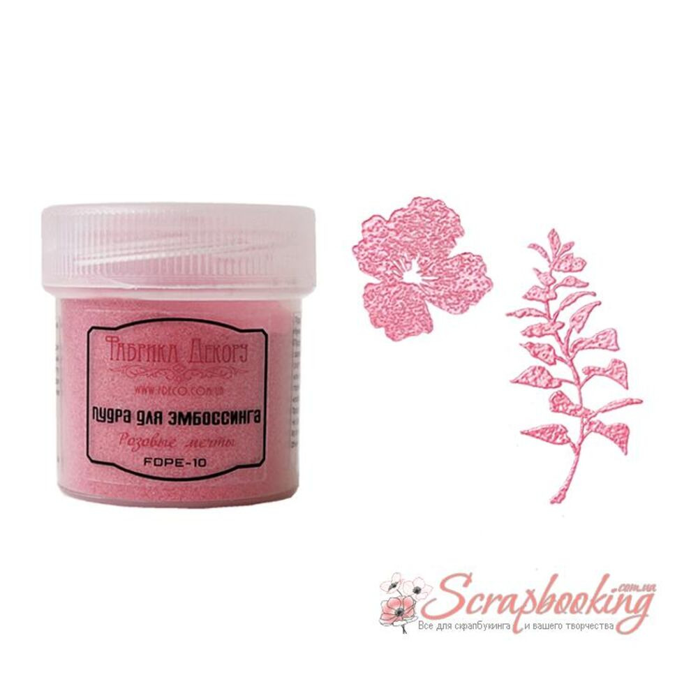 Пудра для ембосингу рожевого кольору від Фабрики декору призначена для створення об'ємних зображень та ефектів на папері, картоні інших твердих поверхнях.