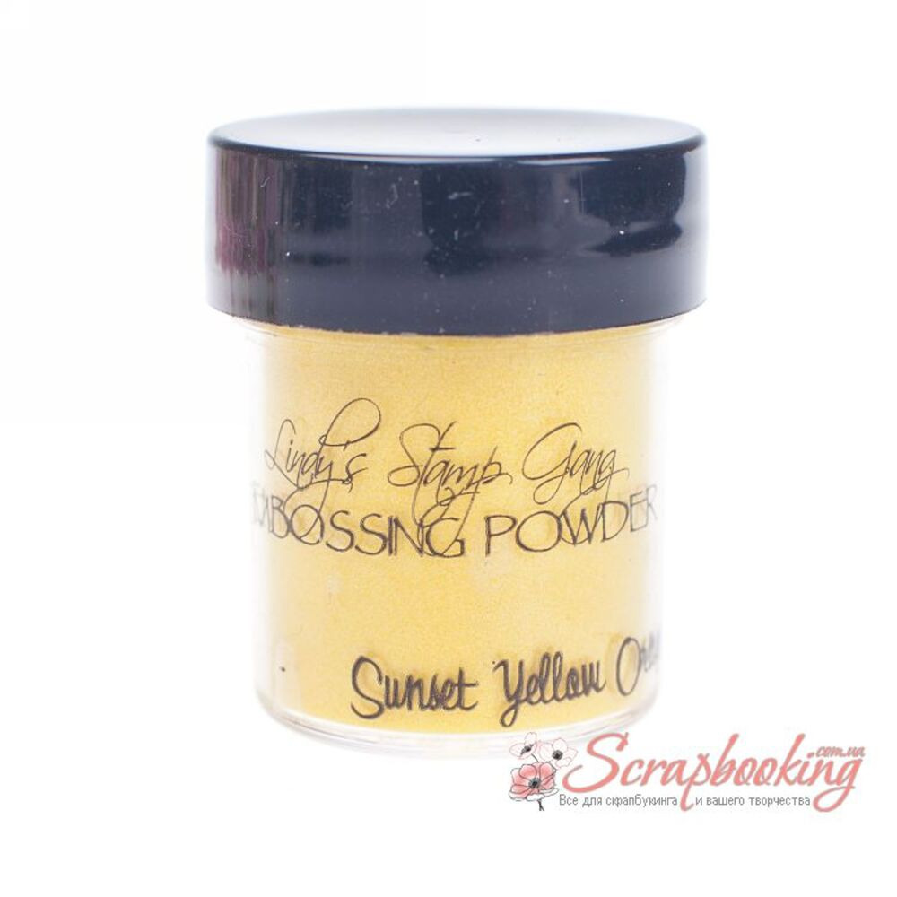 Пудра для ембосингу Lindys Stamp Gang 2-Tone Sunset Yellow Orange з перламутровим відтінком. Діаметр баночки 30мм, висота баночки у закритому стані 40мм.Вага баночки з пудрою 23гр