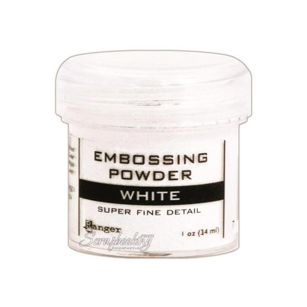 Пудра для ембосингу Ranger "Super Fine Detail" - White (біла), 1 шт, EPJ36678. Висока якість пудри від компанії Ranger об'ємом 34 мл для особливо дрібних деталей. Висота баночки 4 см, діаметр – 3.5 см.