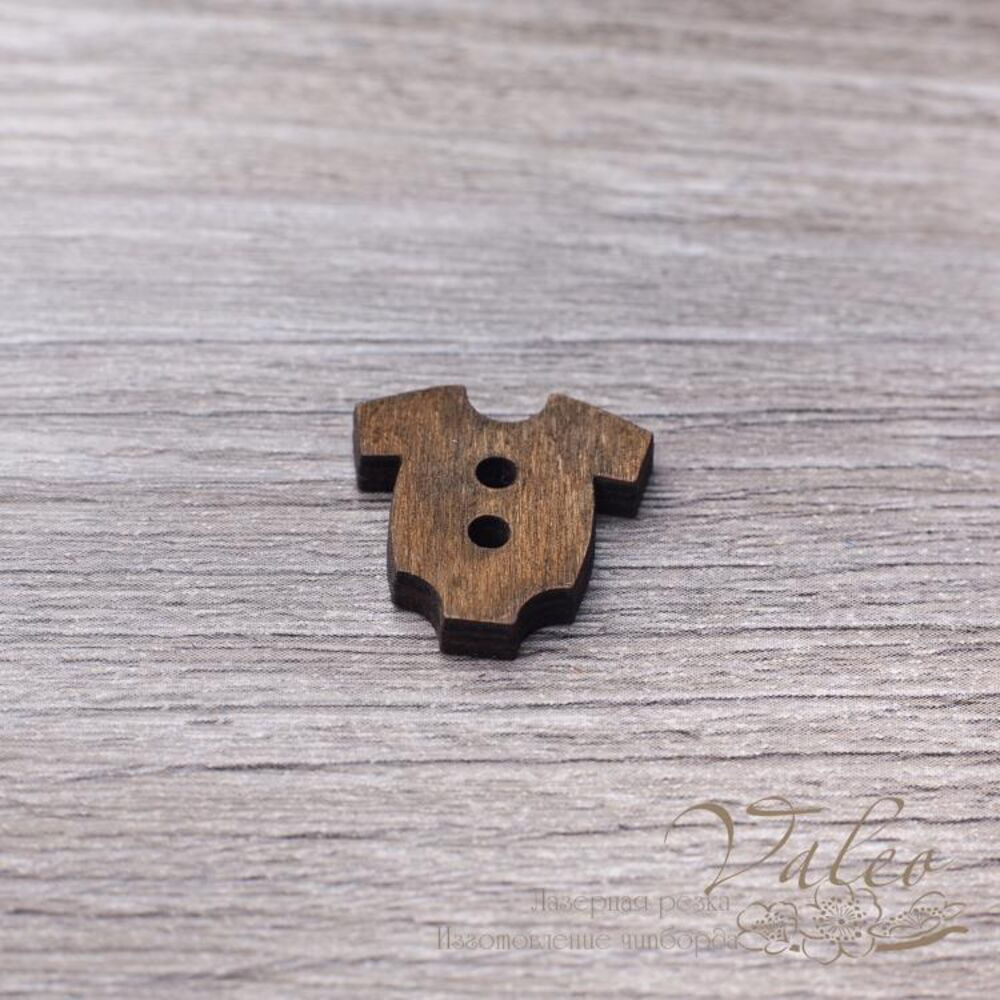 Деревянная окрашенная пуговица бодик коричневого цвета производителя декора Valeo. Размер пуговицы 20*20мм. Есть отверстия для пришивания.