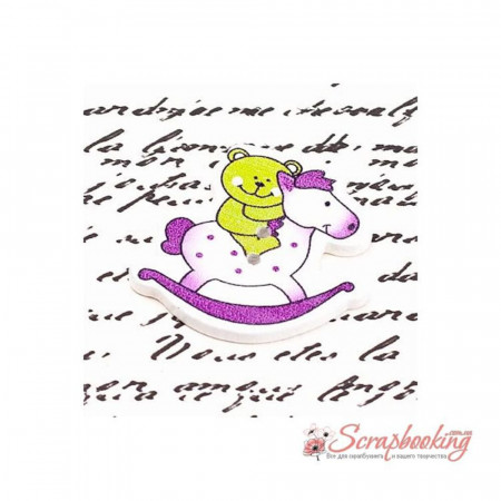 Деревянная окрашенная пуговица мишка на лошадке. Размер пуговицы 33*31мм. Есть отверстия для пришивания.
