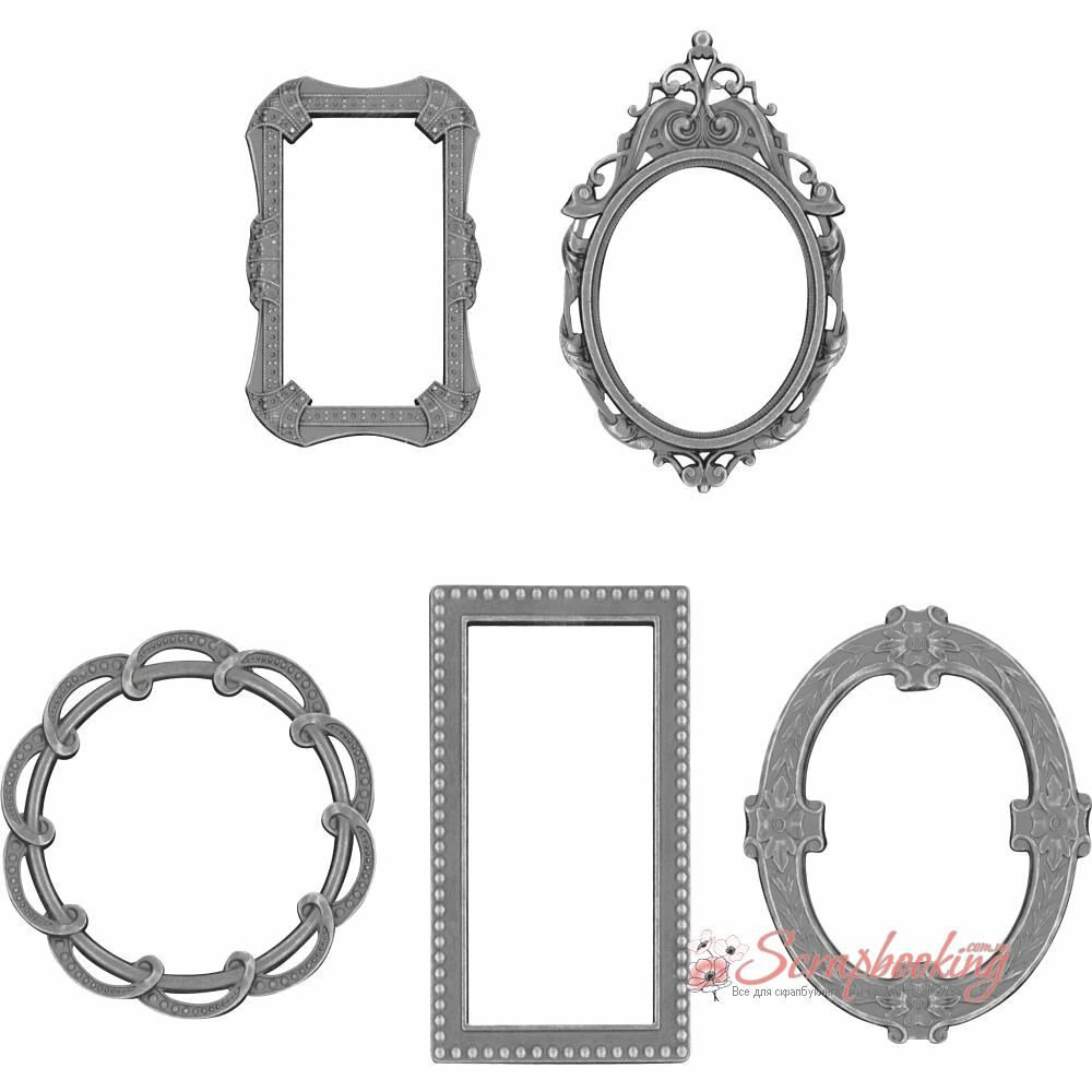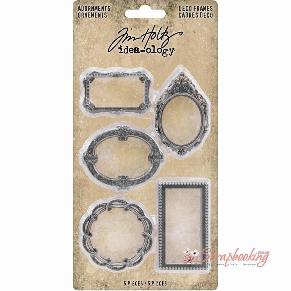 Набір металеві елементи Tim Holtz Ideaology Metal Deco Frames. Набір включає 5 рамок розміром від 3 до 5,5 см
