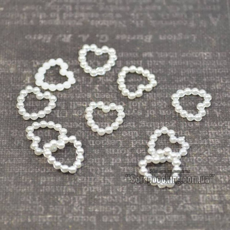 Прикраса із перлин у вигляді серця - 10 шт, колір білий, розмір 11 мм. Ціна за 10 шт.