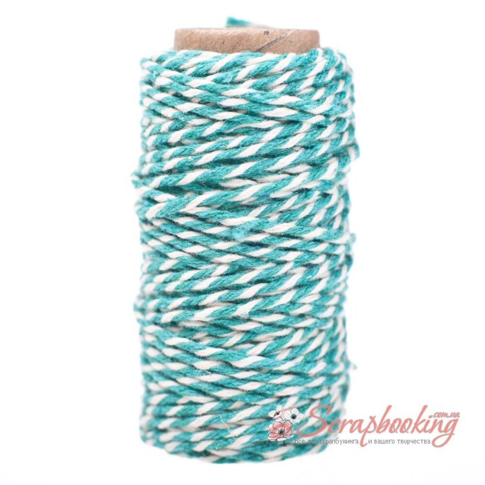Двуцветный хлопковый шнур Bakers Twine толщиной 2мм. Цвет дополнительной нити: зеленый. Толщина шнура 2мм. Длина шнура в бобине 20м. Шнур Bakers Twine используется при упаковке подарков, в качестве декоративного при изготовлении открыток, альбомов, блокнотов.