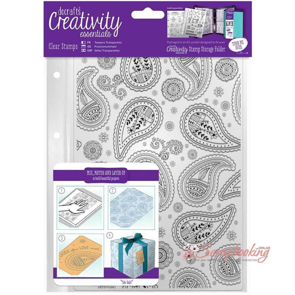 Фоновий акриловий штамп Paisley від виробника Docrafts. Розмір штампа 15*22см. Призначений для отримання відбитків, представлених на фото, на папері за допомогою акрилового блоку і фарби для Штампінг (можна придбати додатково)