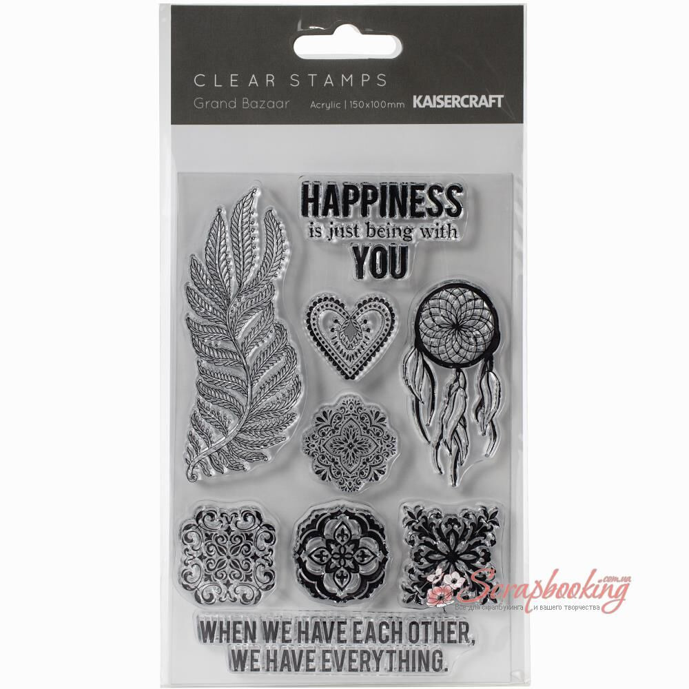 Набір акрилових штампів Grand Bazaar від виробника Kaisercraft. Розмір штампа 10*15см. Призначений для отримання відбитків, представлених на фото, на папері за допомогою акрилового блоку і фарби для Штампінгу (можна придбати додатково)