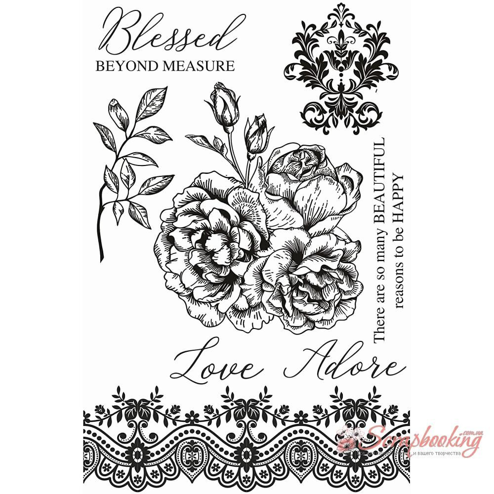 Набір акрилових штампів Rosabella від виробника Kaisercraft. Розмір штампа 10*15см. Призначений для отримання відбитків, представлених на фото, на папері за допомогою акрилового блоку і фарби для Штампінгу (можна придбати додатково)