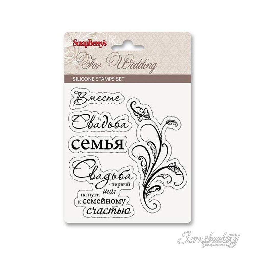 Набір акрилових штампів Scrapberrys "Весільна колекція" - набір 1, 5 шт, розмір 10х11 см, SCB220602627. Розмір штампів від 1.2х4.0 до 4.0х9.0 см. Призначені для отримання відбитків, представлених на фото, на папері за допомогою акрилового блоку і фарби для штампінгу (можна придбати додатково)