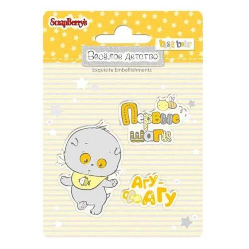 Набір акрилових штампів Веселе дитинство №1 від виробника ScrapBerrys з історіями про улюбленого кота басік. У комплекті штампи із зображенням кошеняти басік і його перших кроків з написами російською мовою. Розмір упаковки, де кріпляться штампи 7*7см. Зберігайте штамп в прохолодному місці, захищеному від прямих сонячних променів. Як оснащення застосовується акриловий блок, відповідний за розміром штампа.