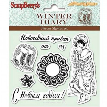 Набор акриловых штампов Зимний дневник 3 от производителя ScrapBerrys. В комплекте штампы с изображением девушки в шубе с подарком, коньков на женских ботиночках, снежинки и поздравлений с новым годом. Размер упаковки, где крепятся штампы 10*12см. Храните штамп в прохладном месте, защищенном от прямых солнечных лучей. В качестве оснастки применяется акриловый блок, подходящий по размеру штампа.