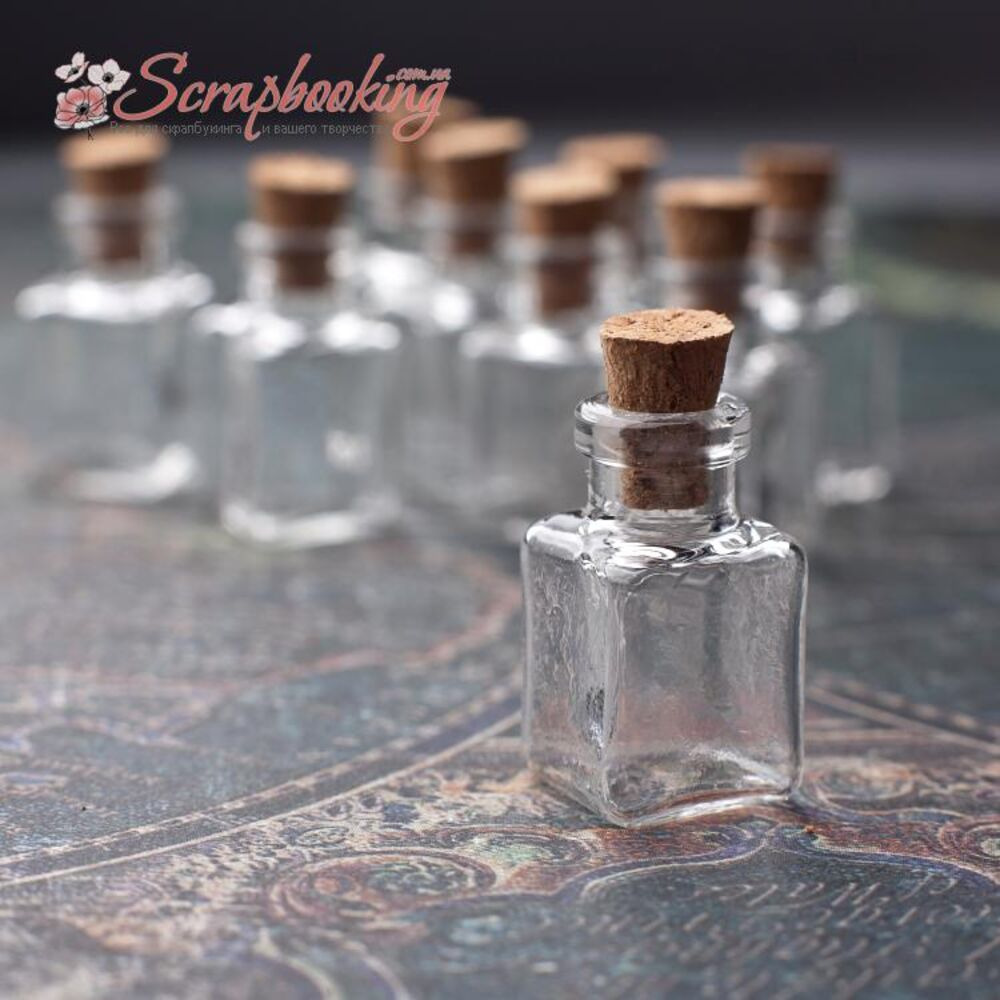 Декоративна скляна квадратна пляшечка 1 шт., розмір сторони 14*14мм, висота 25 мм. Коркова кришка входить у комплект.