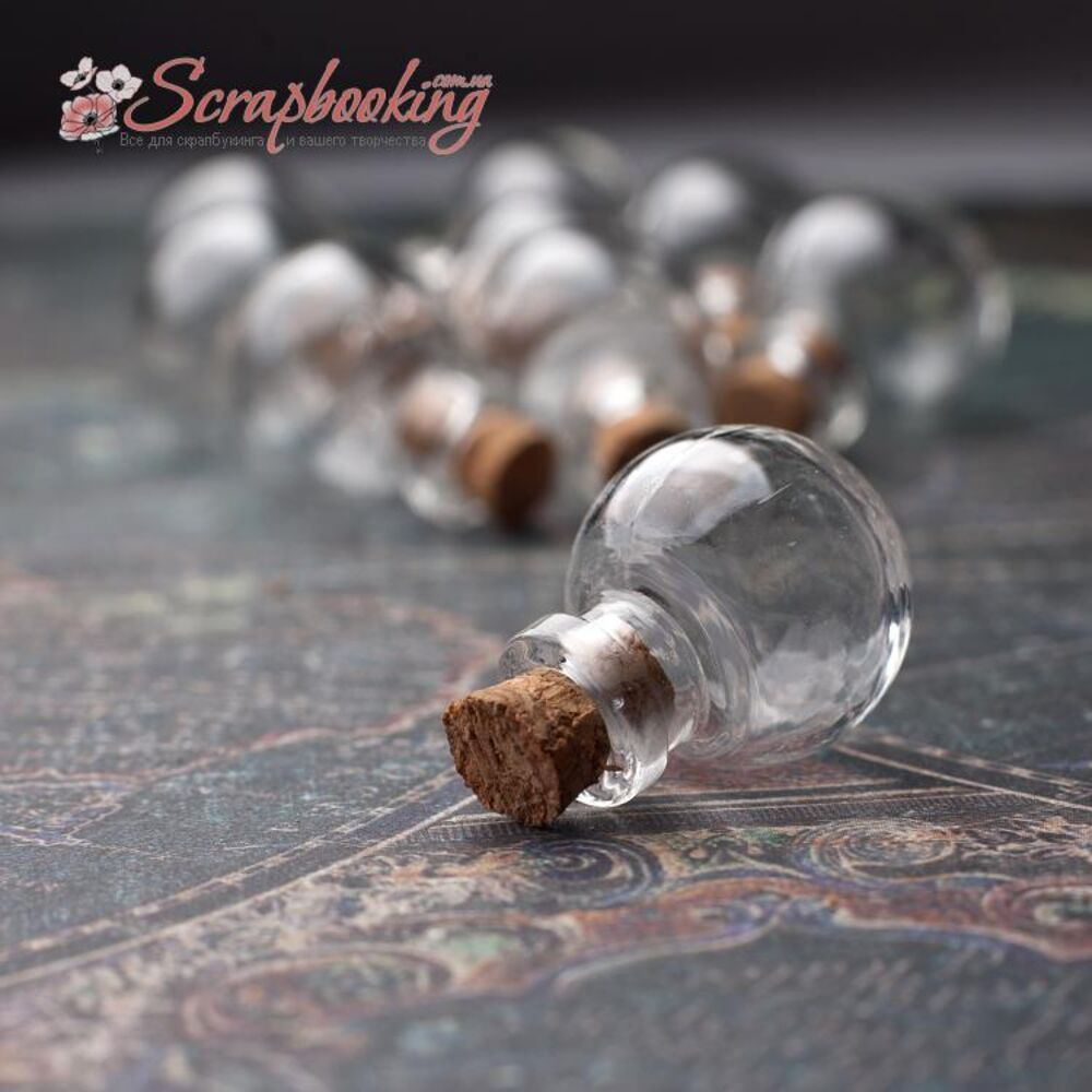 Декоративная стеклянная шарообразная бутылочка 1 шт, диаметр 20 мм, высота 24 мм. Пробковая крышка входит в комплект.