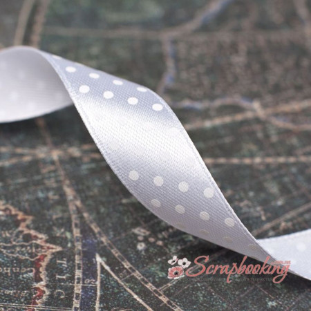 Декоративна атласна стрічка з крапками білого кольору на білій основі. Ширина стрічки 15мм. Ціна вказана за 1 метр. Використовується при упаковці подарунків, як декоративний елемент при виготовленні листівок, альбомів, блокнотів.