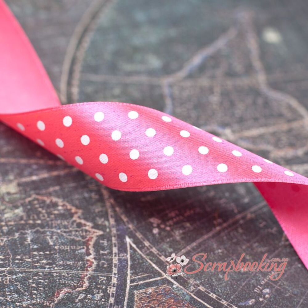 Декоративна атласна стрічка з крапками білого кольору на малиновій основі. Ширина стрічки 25мм. Ціна вказана за 1 метр. Використовується при упаковці подарунків, як декоративний елемент при виготовленні листівок, альбомів, блокнотів.