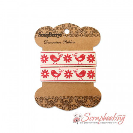 Бавовняна стрічка пташки та квіточки від виробника Scrapberry's. Ширина стрічки 25мм. Довжина стрічки у бобіні 2метри.