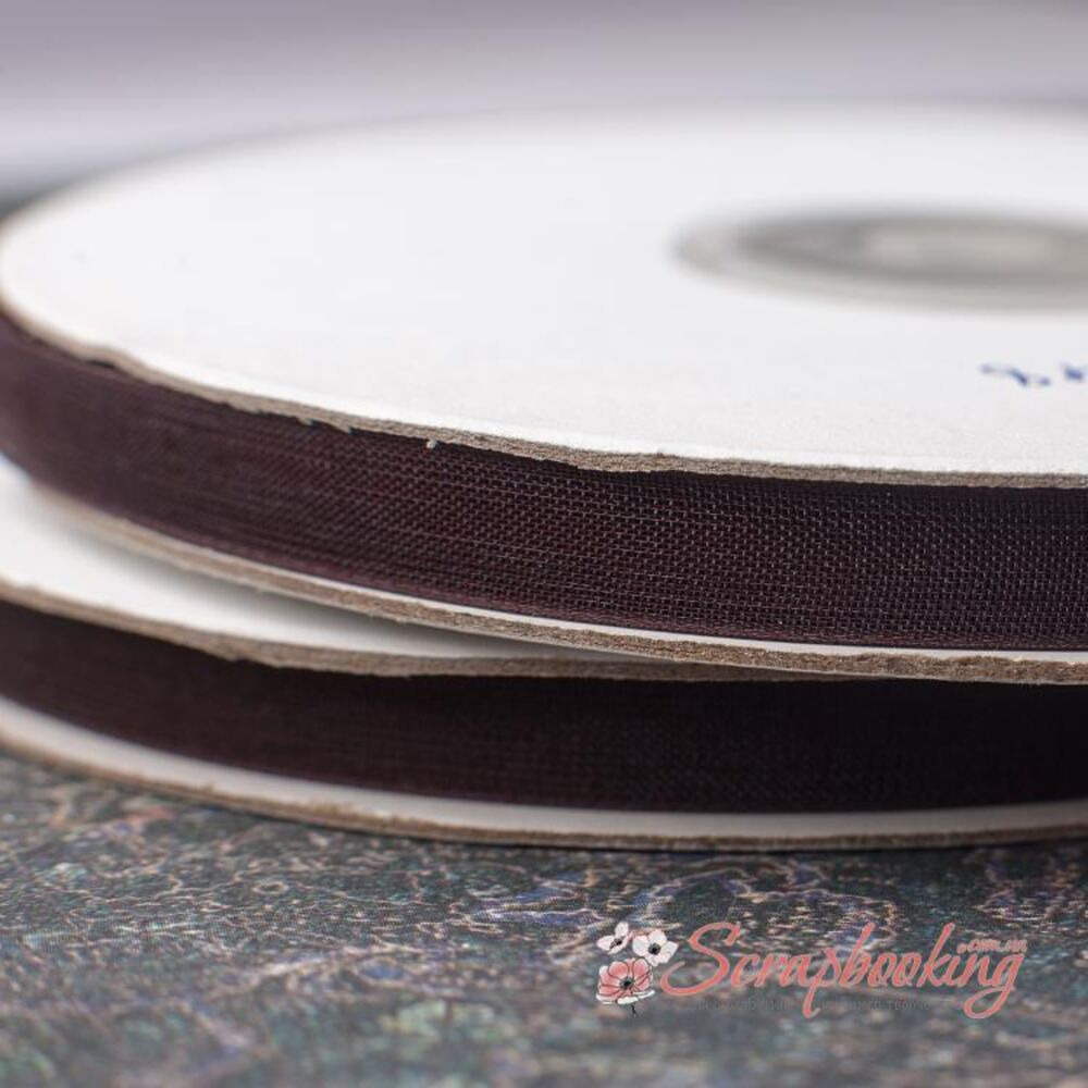 Рулон стрічки з органзи. У рулоні близько 41м органзи темно-коричневого кольору завширшки 0,6см