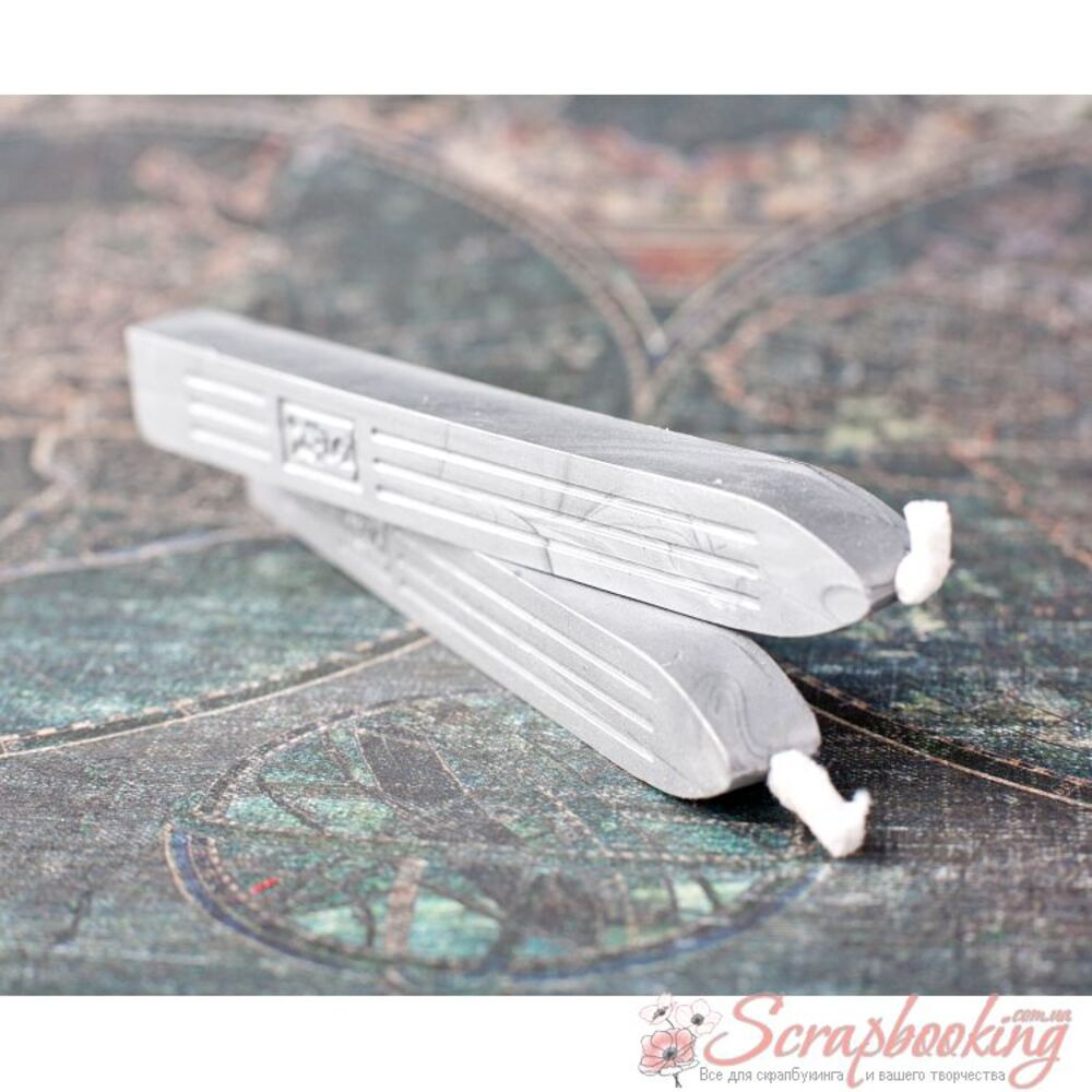 Сургуч із ґнотом срібного кольору виробника Manuscript. Розмір сургучної палички 9мм*12мм*100мм. Застосовується для декоративного пломбування листів, конвертів, сувоїв, пляшок та іншого.