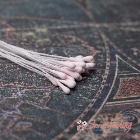 Декоративні тичинки матового рожевого кольору. Діаметр тичинки 2мм. В упаковці 20 гілочок по тичинці з кожного боку. Застосовуються при виготовленні кольорів ручної роботи або як самостійні прикраси