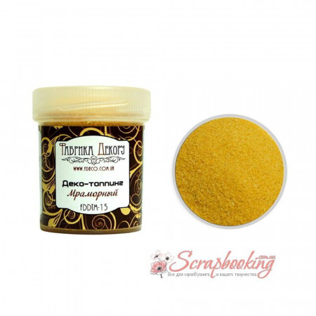 Топінг декоративний мармуровий Жовток, 65гр - це натуральні частинки мармуру 0,5-1 мм, пофарбовані в яскраві кольори. Ідеально підходить для декорування будь-яких поверхонь, створення додаткової текстури та об'єму.