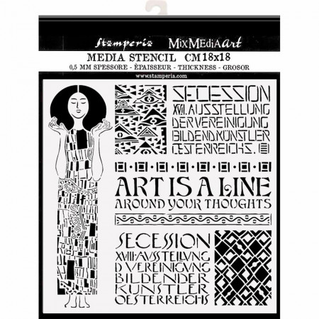 Пластиковий трафарет із малюнком Art Nouvea, Klimt від виробника Stamperia. Розмір трафарету 18*18см. Товщина 0,25 мм. Застосовується для створення об'ємних зображень, для роботи зі спреями та текстурними пастами.