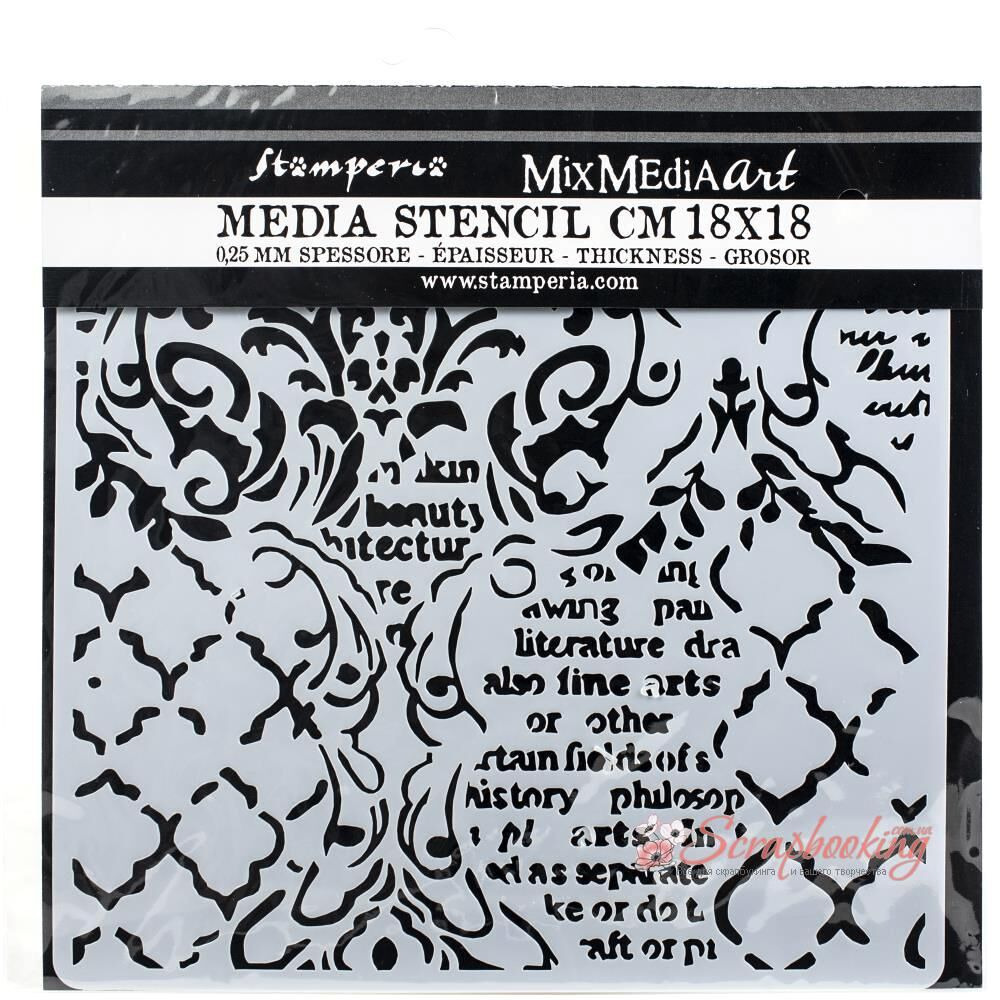 Пластиковий трафарет із малюнком Wallpaper Music & Writings від виробника Stamperia. Розмір трафарету 18*18см. Товщина 0,25 мм. Застосовується для створення об'ємних зображень, для роботи зі спреями та текстурними пастами.