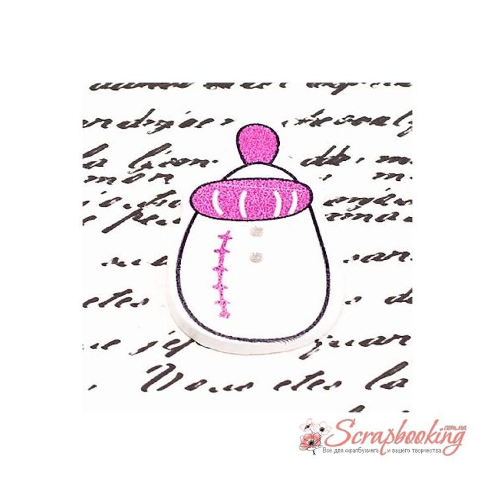 Дерев'яний пофарбований гудзик дитяча пляшечка. Розмір ґудзика 38*22мм. Є отвори для пришивання.
