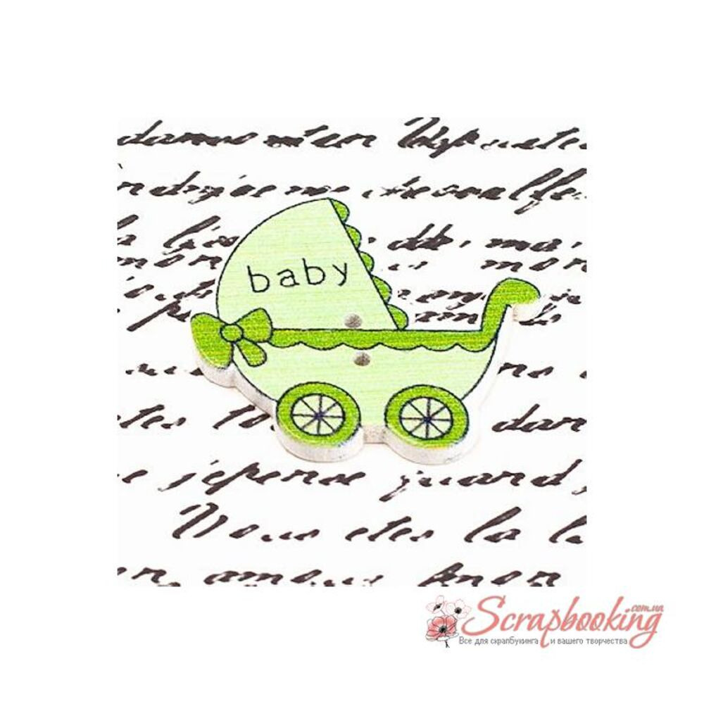 Дерев'яний пофарбований гудзик дитячий візок. Розмір ґудзика 34*32мм. Є отвори для пришивання.