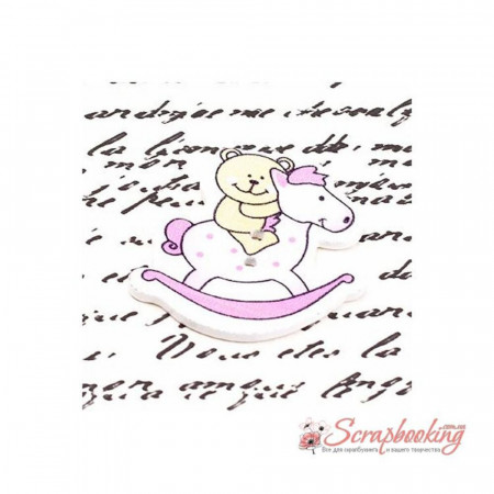 Дерев'яний пофарбований гудзик ведмедик на конячці. Розмір ґудзика 33*31мм. Є отвори для пришивання.