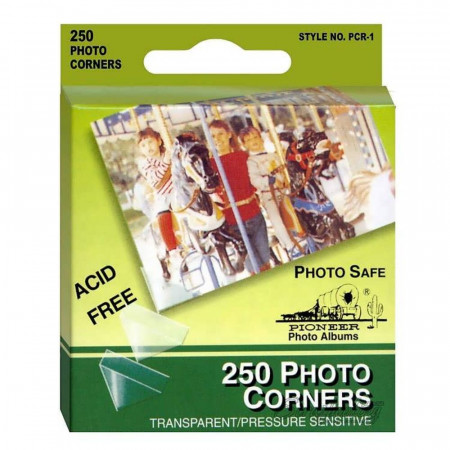 Самоклеющиеся прозрачные уголки для фотографий Pioneer - Photo Corners, 250 шт. PCR-1. Предназначены для крепления фотографий в альбомах. Размер 12мм