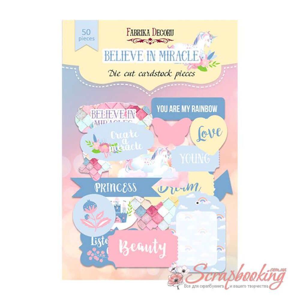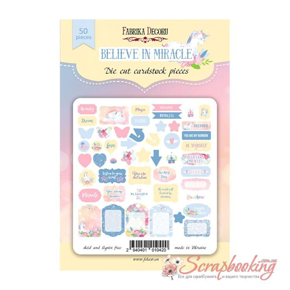 Висічки з колекції Believe in miracle від виробника Фабрика Декору. В упаковці декоративні Висічки в кількості 50шт. Розмір висічок від 2 до 8 см. Щільність висічок 250гр / м2.