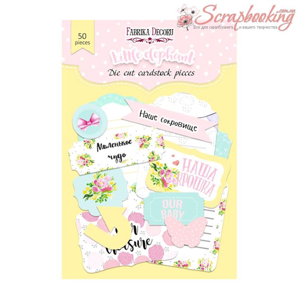 Висічки з колекції Little elefant від виробника Фабрика Декору. В упаковці декоративні Висічки в кількості 50шт. Розмір висічок від 2 до 8 см. Щільність висічок 250гр / м2.