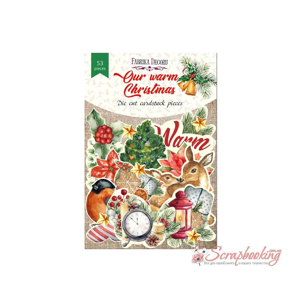 Набір паперових висічок для скрапбукінгу, колекція Our warm Christmas, виготовлені з високоякісної європейської паперу, без кислоти і лігніну, щільність 250 г / кв.м. У наборі 53 штука. Розмір елементів від 2 до 12см.