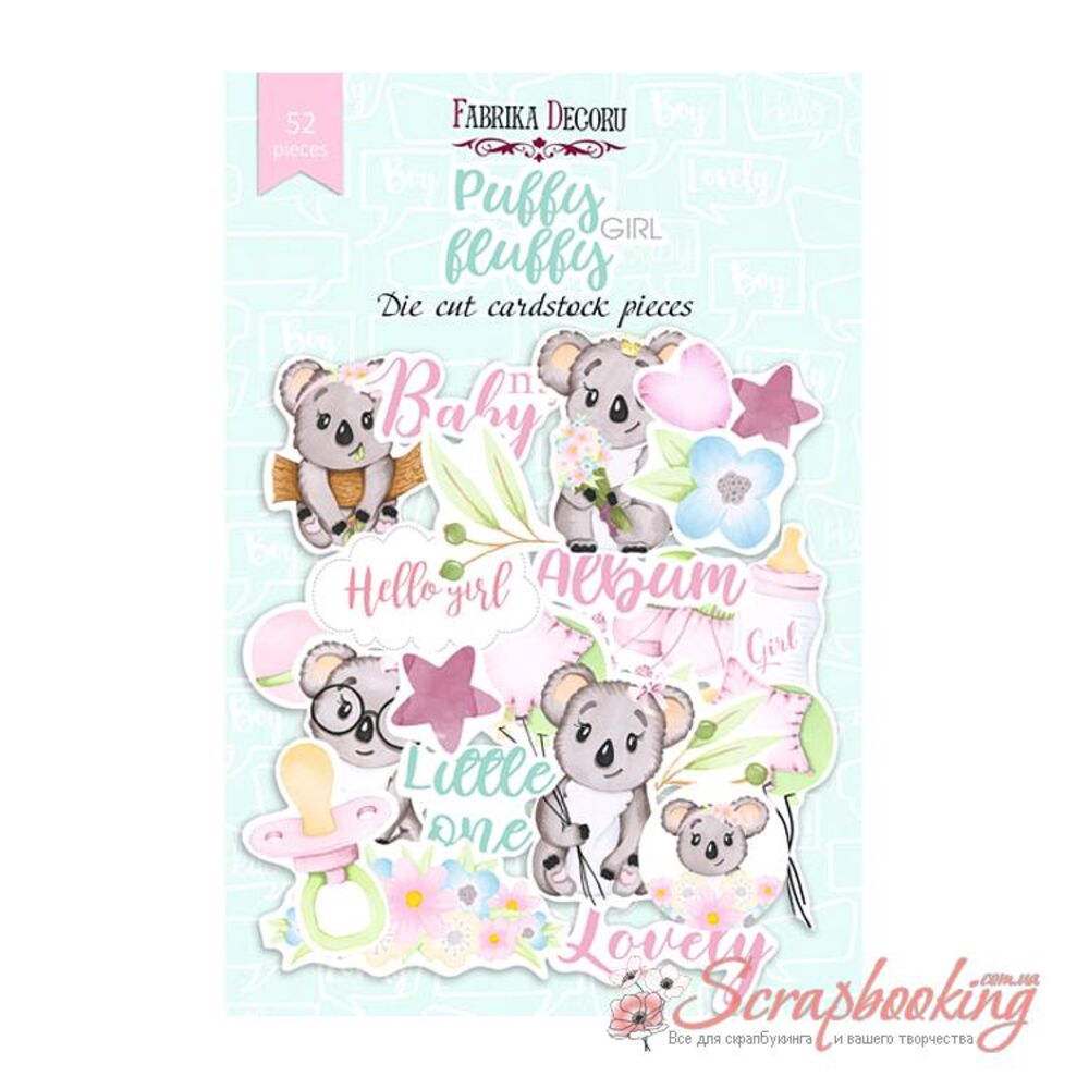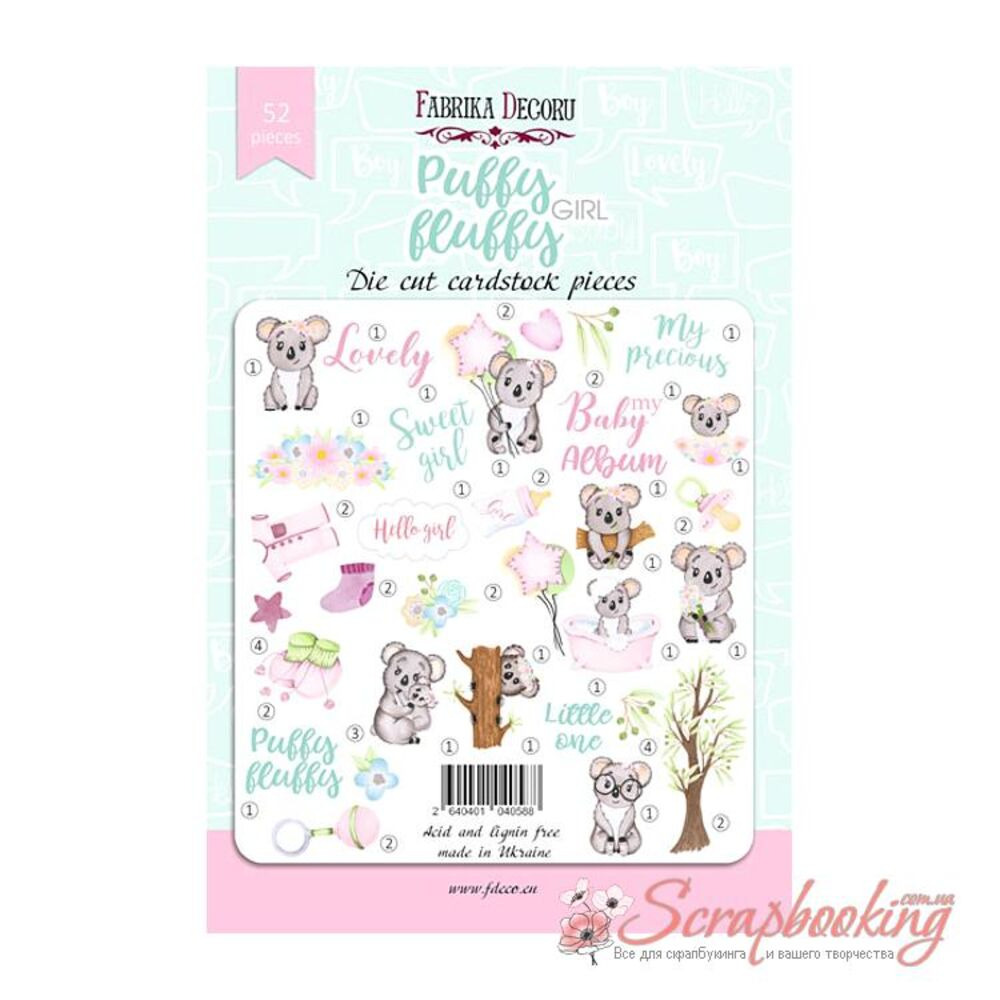 Висічки з колекції Puffy Fluffy Girl від виробника Фабрика декору виготовлені з високоякісної європейської паперу, без кислоти і лігніну. В упаковці декоративні Висічки в кількості 52шт. Щільність висічок 250гр / м2.