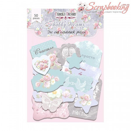 Висічки з колекції Shabby dreams від виробника Фабрика Декору. В упаковці декоративні Висічки в кількості 50шт. Розмір висічок від 2 до 8 см. Щільність висічок 250гр / м2.