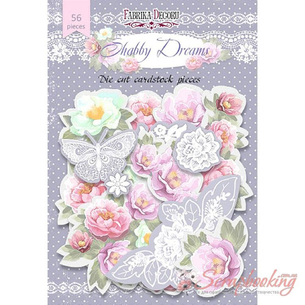 Висічки з колекції Shabby dreams від виробника Фабрика декору виготовлені з високоякісної європейської паперу, без кислоти і лігніну. В упаковці декоративні Висічки в кількості 54шт. Щільність висічок 250гр / м2.