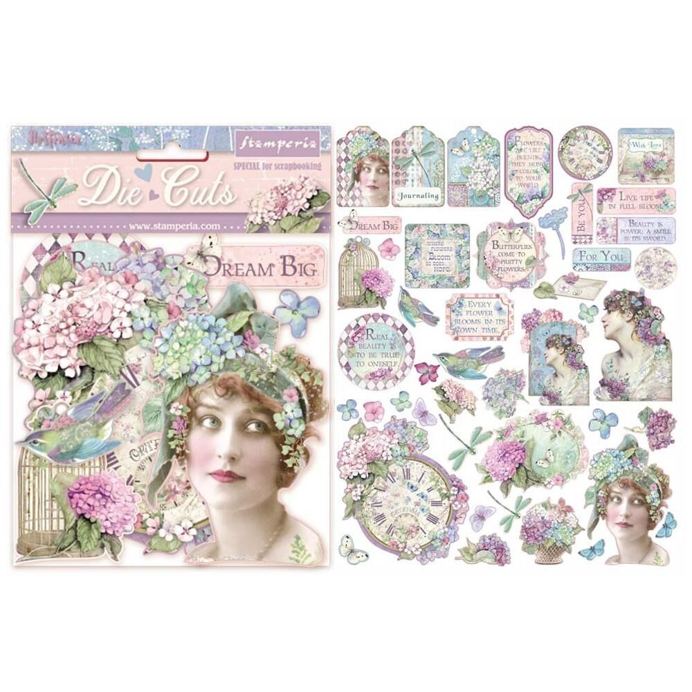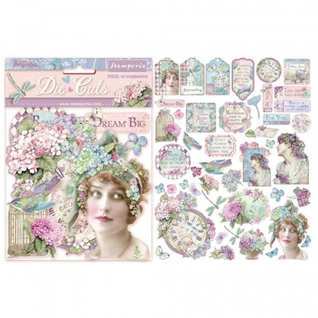Висічки Die-Cuts Hortensia від виробника Stamperia. В упаковці декоративні чіпбордові висічки в кількості 45шт.