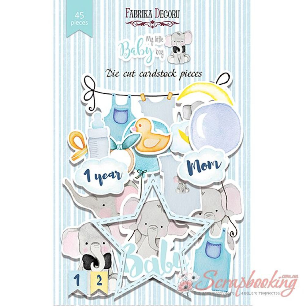 Высечки из коллекции My little baby boy от производителя Фабрика декора изготовлены из высококачественной европейской бумаги, без кислоты и лигнина. В упаковке декоративные высечки в количестве 42шт. Плотность высечек 250гр/м2.