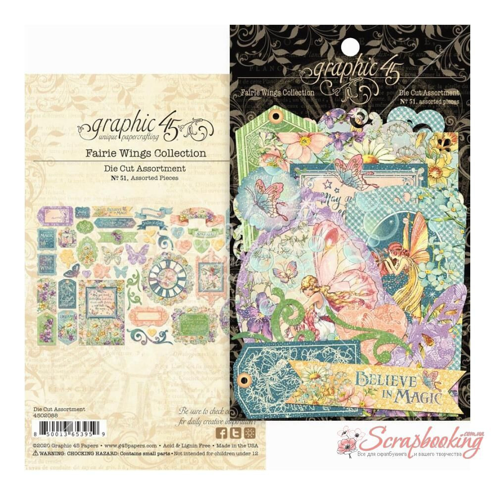 Набор высечек из коллекции Fairie Wings производителя Graphic 45. В упаковке высечки разнообразных размеров и дизайнов в количестве 51шт. Размер упаковки 11*18см. Архивное качество.