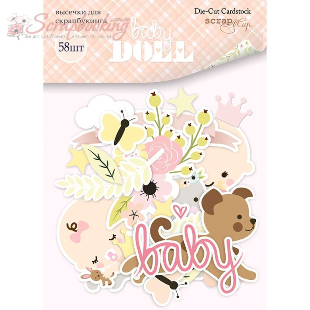 Высечки из коллекции Doll Baby от производителя Scrapmir. В упаковке декоративные высечки в количестве 58шт. Плотность высечек 250гр/м2.