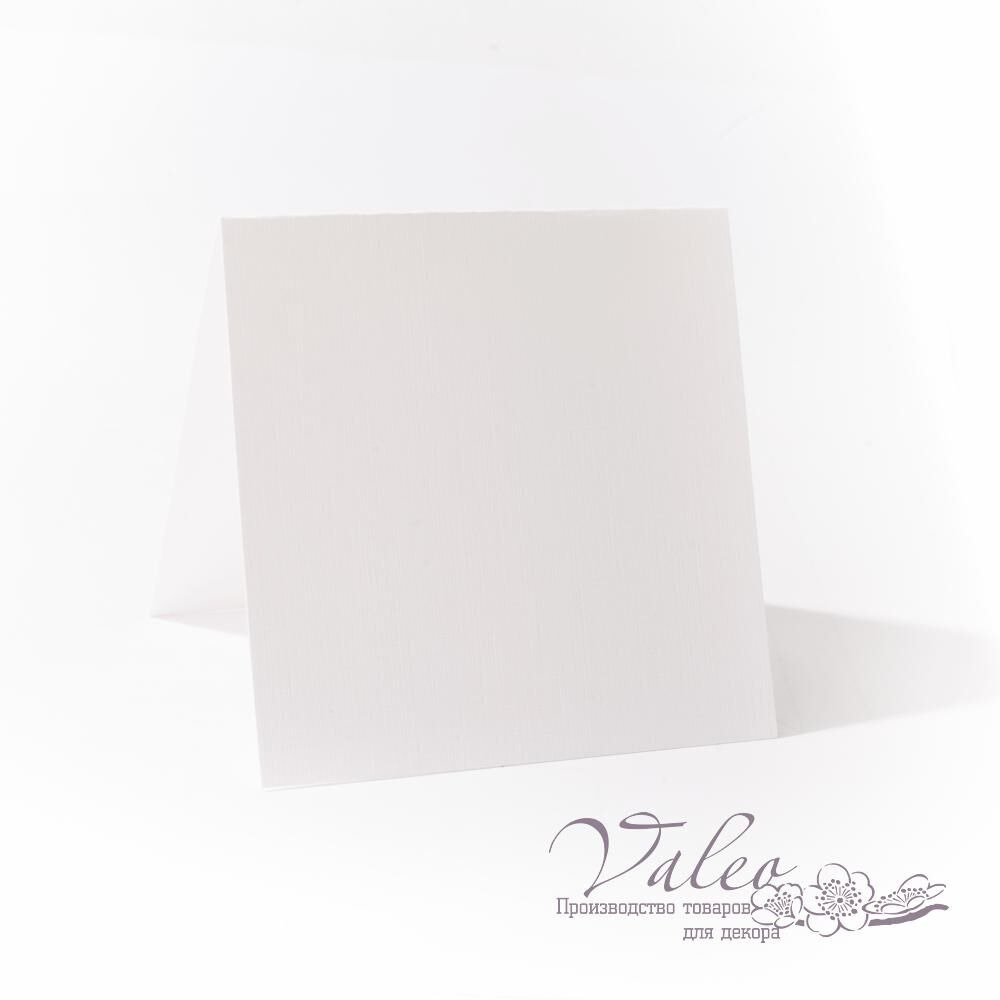 Заготовка для листівок білого кольору розміром 10*10см. Розмір у розкладеному положенні 20*10см. Виконана з матового картону з текстурою льон щільністю 270гр/м2.
