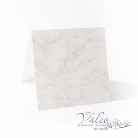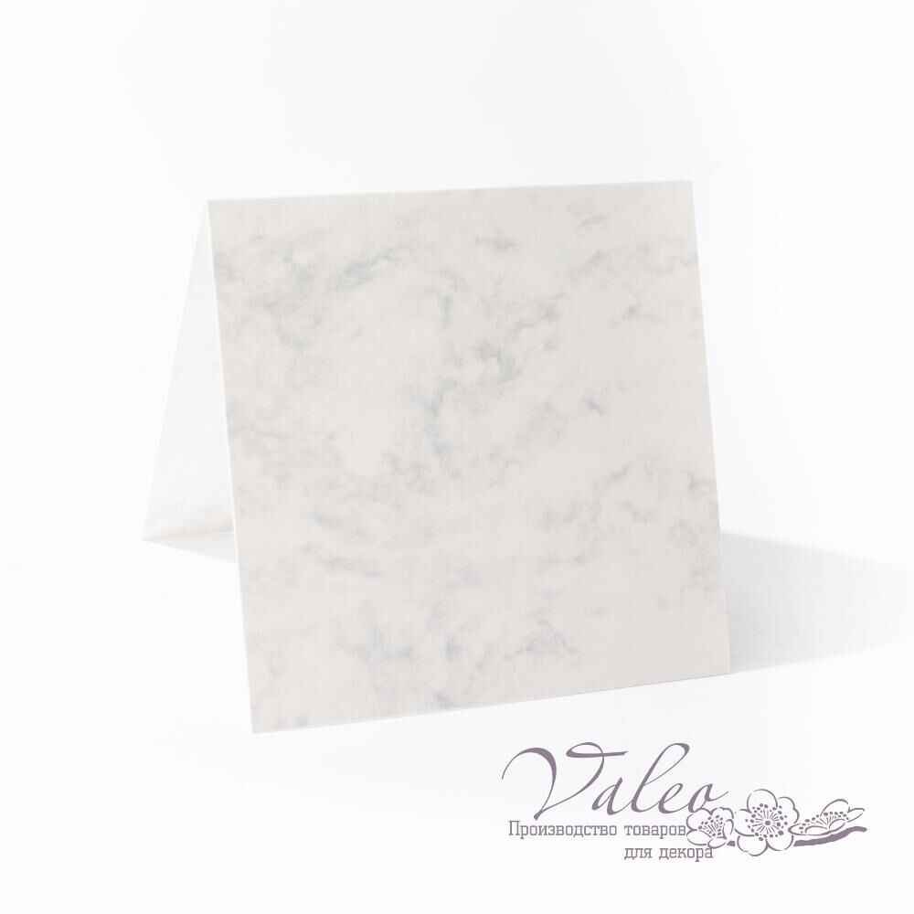 Заготовка для листівок білого кольору з малюнком мармур розміром 14*14см. Розмір у розкладеному положенні 28*14см. Виконана з матового картону щільністю 300гр/м2.